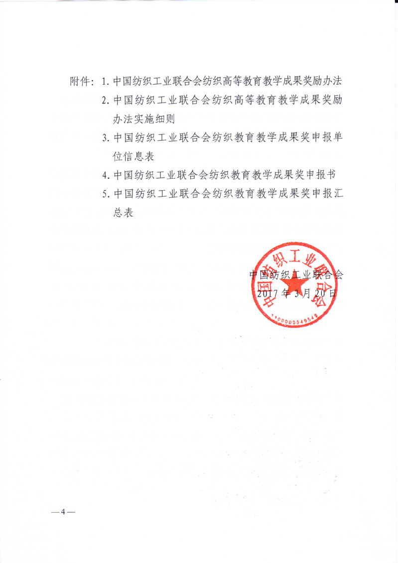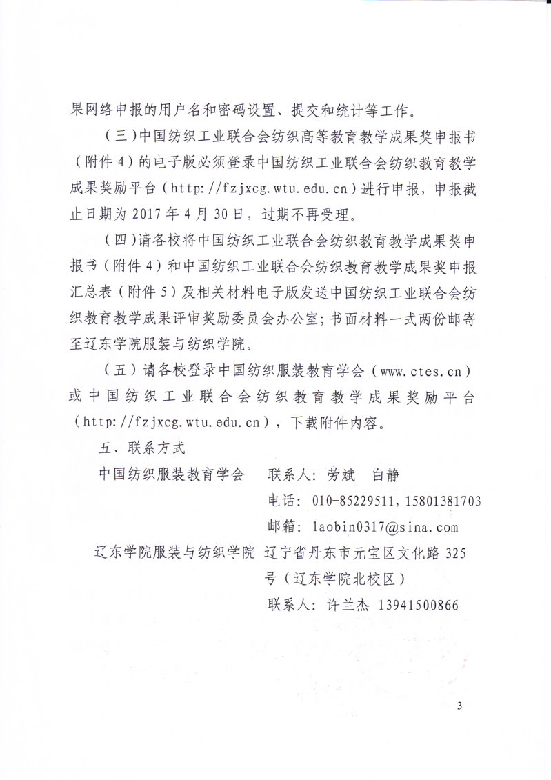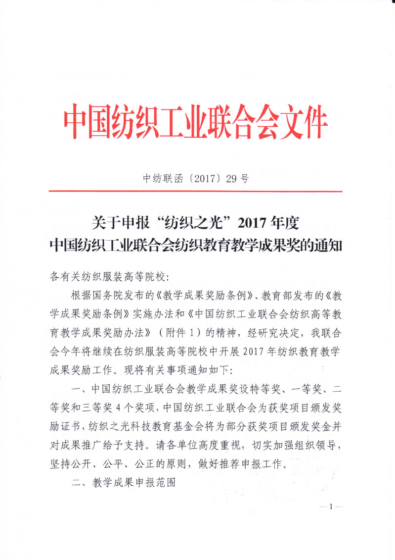 关于申报“纺织之光”2017年度中国纺织工业联合会纺织教育教学成果奖的通知