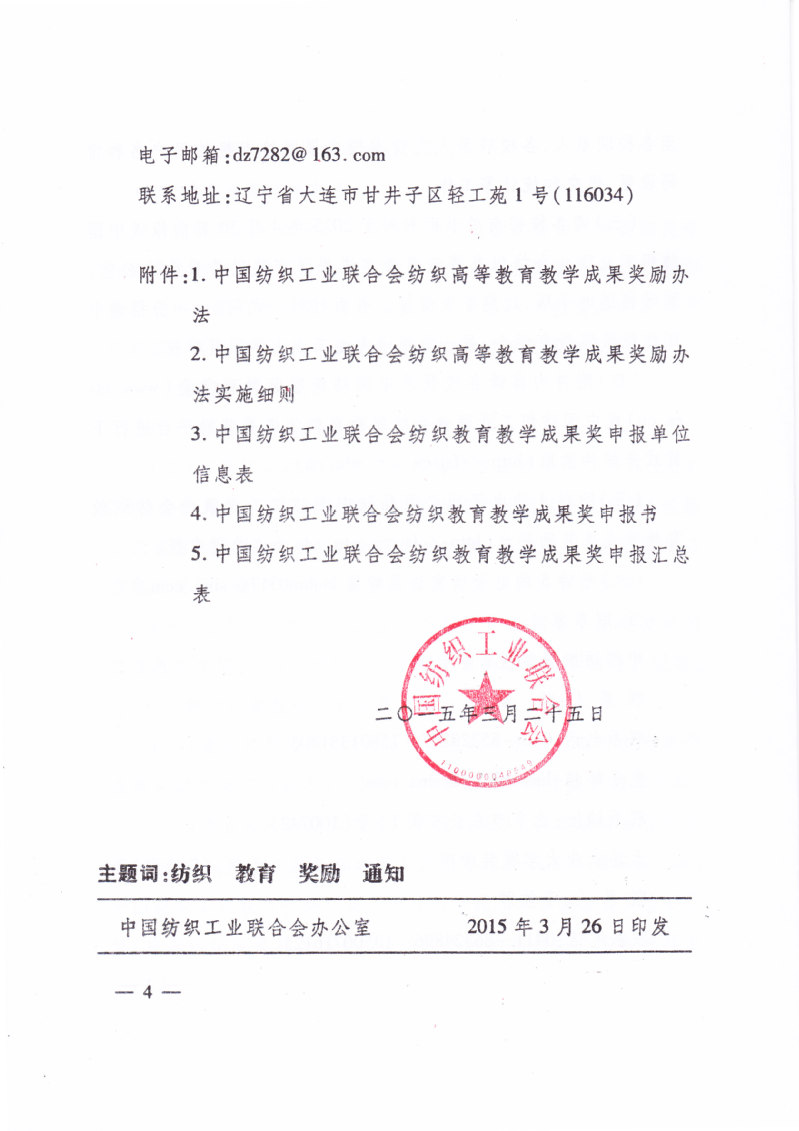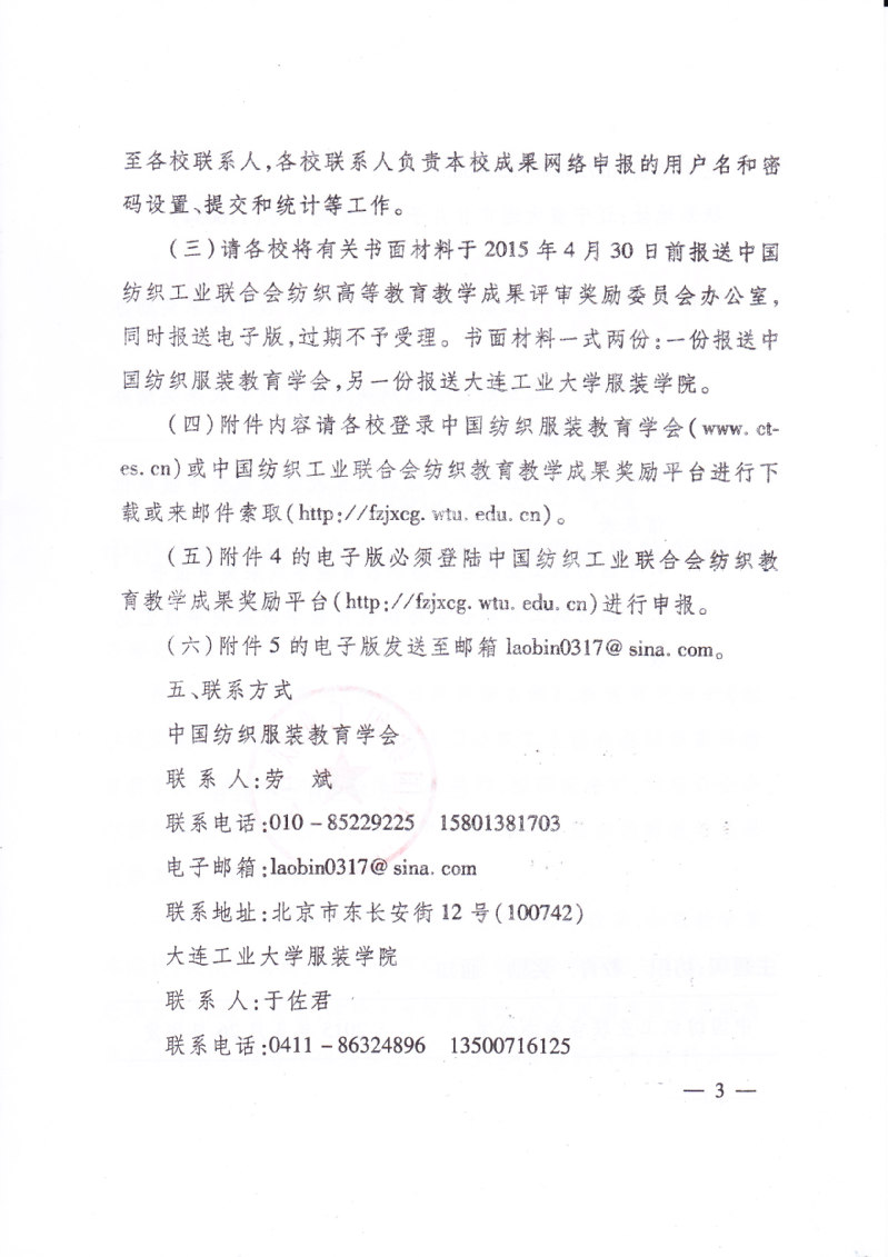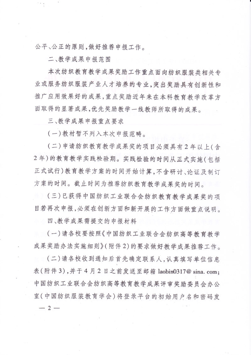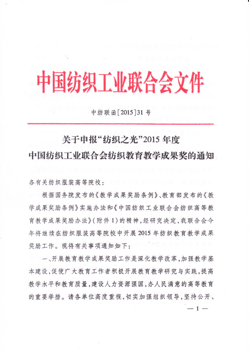 关于申报“纺织之光”2015年度中国纺织工业联合会纺织教育教学成果奖的通知