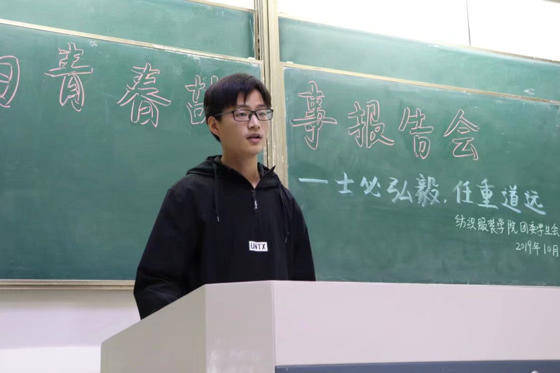 2019年10月28日,纺服学院团委学生会在8号楼105举办了以“士必弘毅,任重道远”为主题的青春故事报告会。