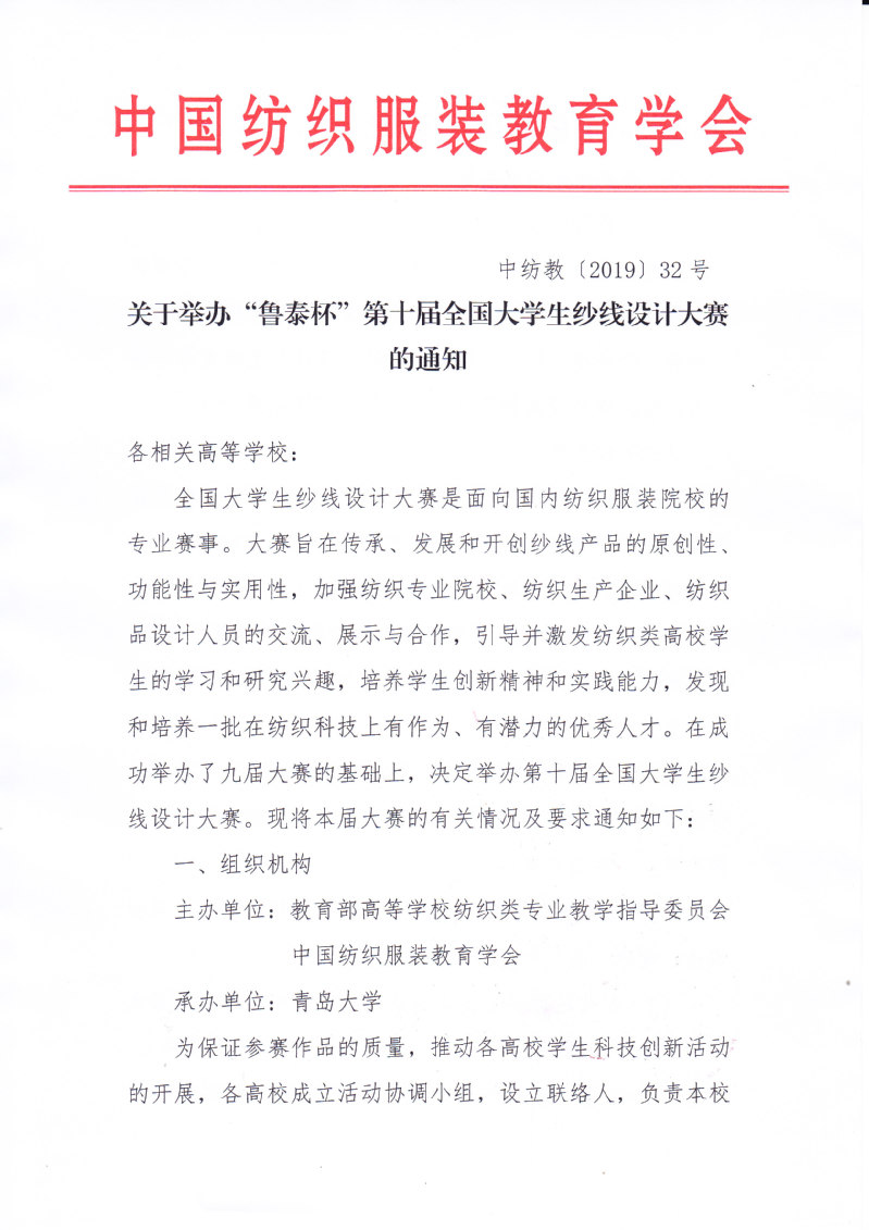 关于举办“鲁泰杯”第十届全国大学生纱线设计大赛的通知