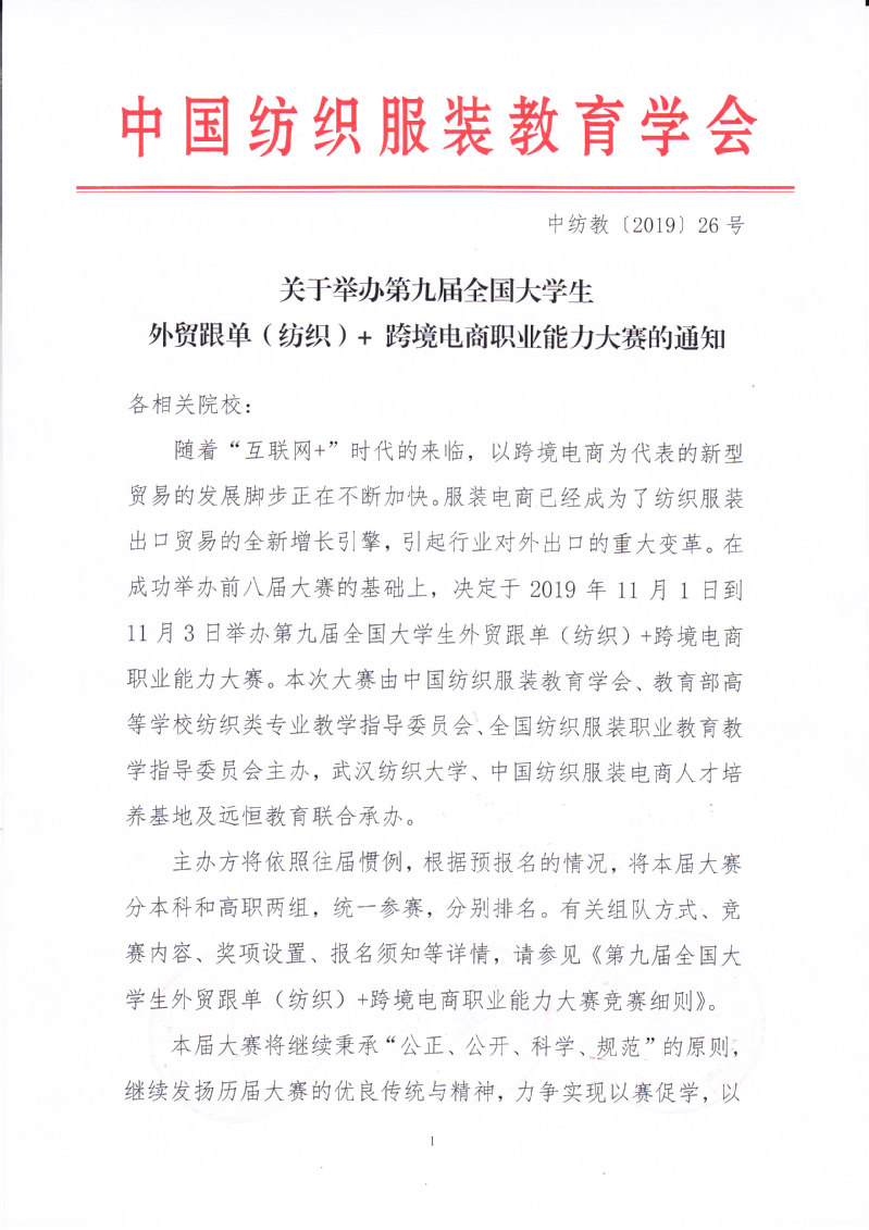 关于举办第九届全国大学生外贸跟单(纺织)+跨境电商职业能力大赛的通知