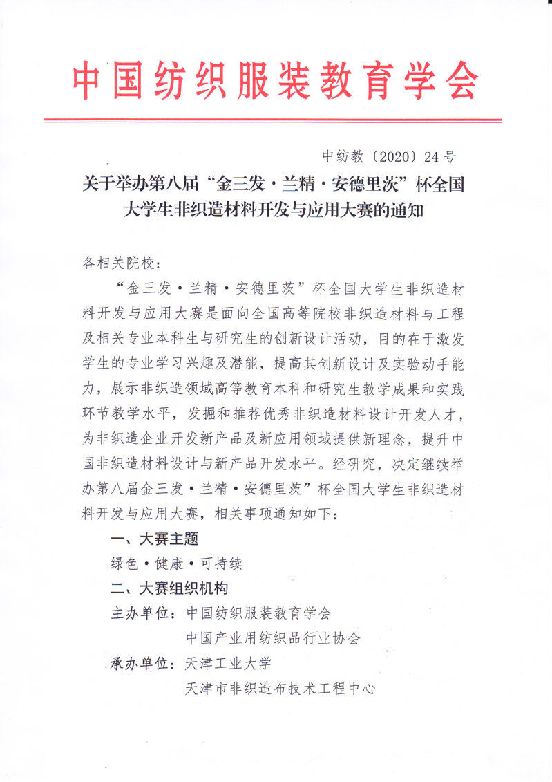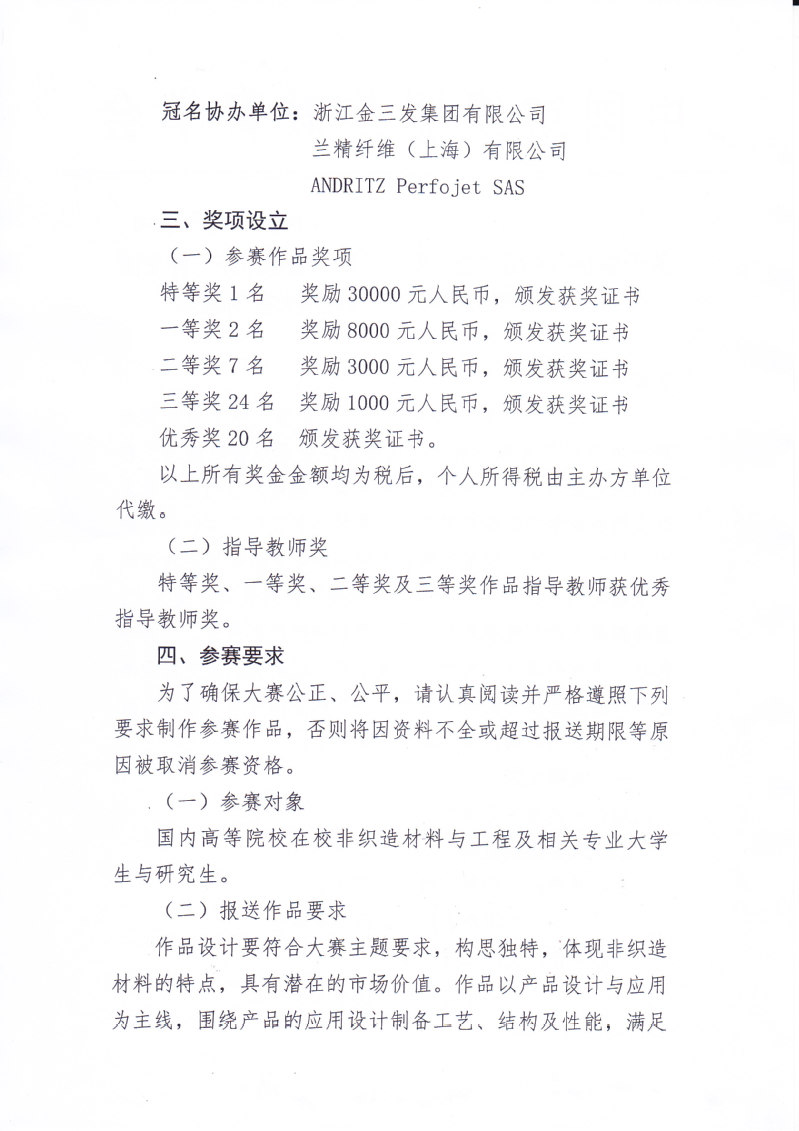 关于举办第八届“金三发·兰精·安德里茨”杯全国大学生非织造材料开发与应用大赛的通知