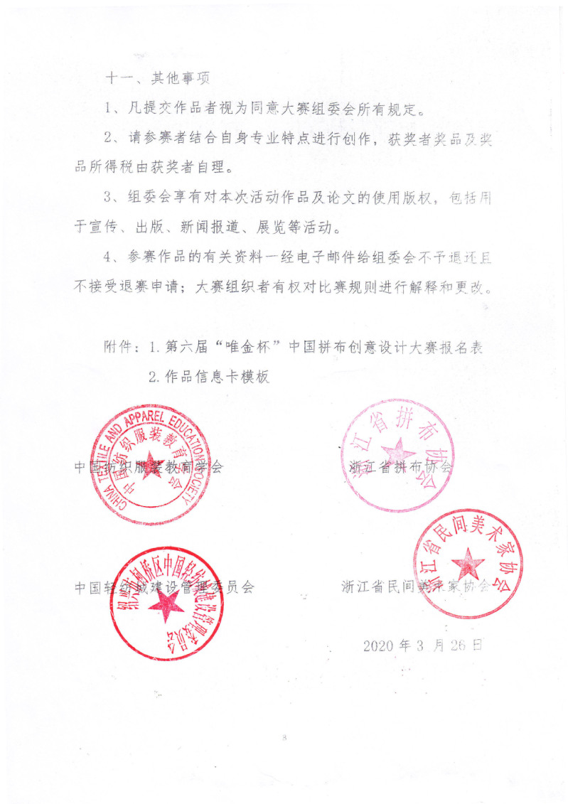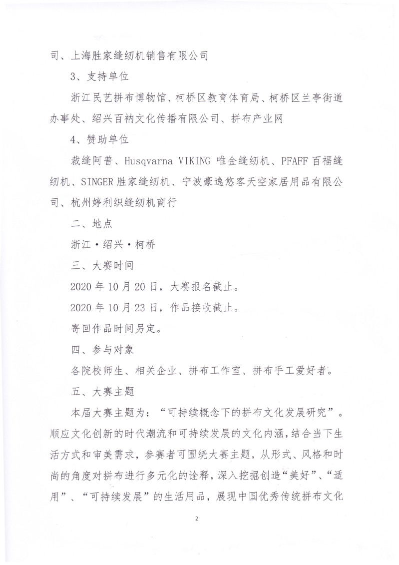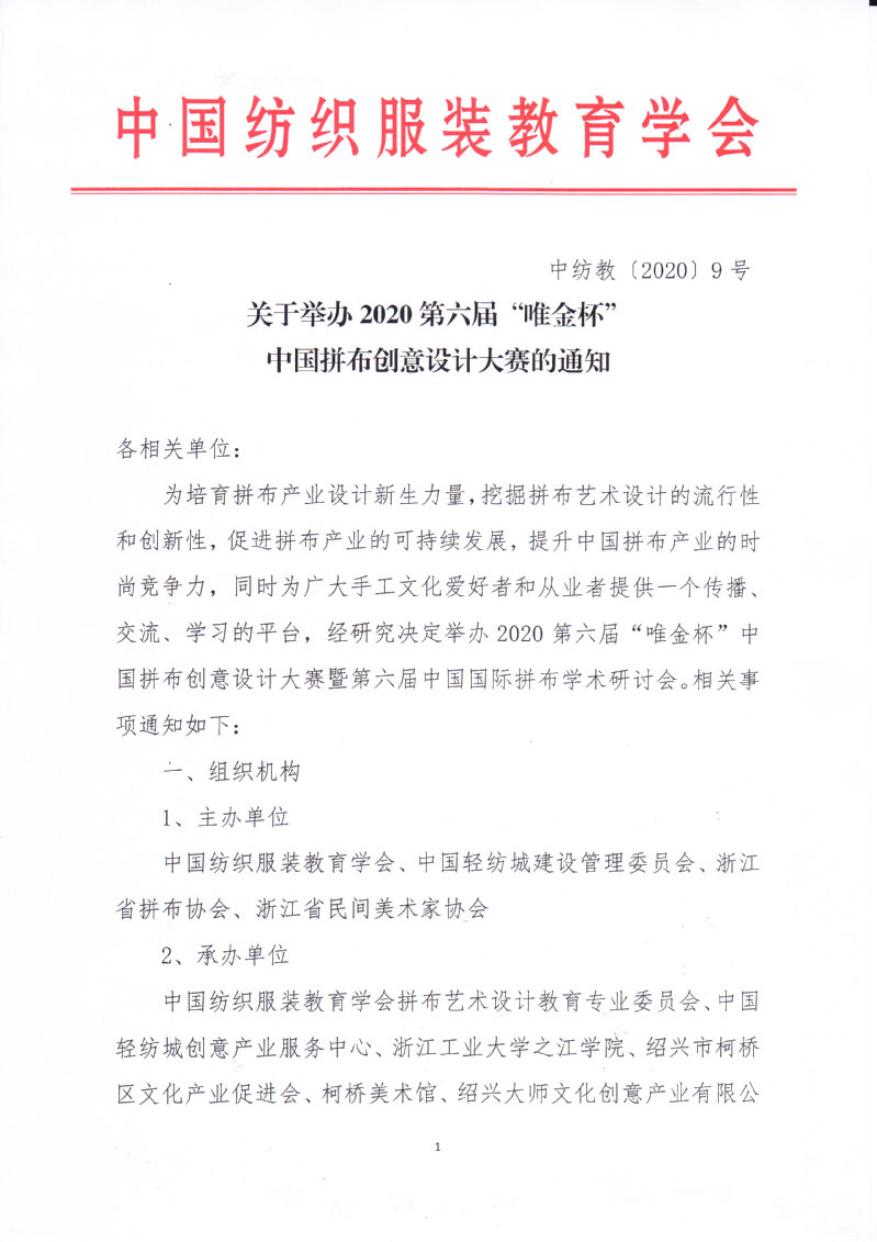 关于举办2020第六届“唯金杯”中国拼布创意设计大赛的通知