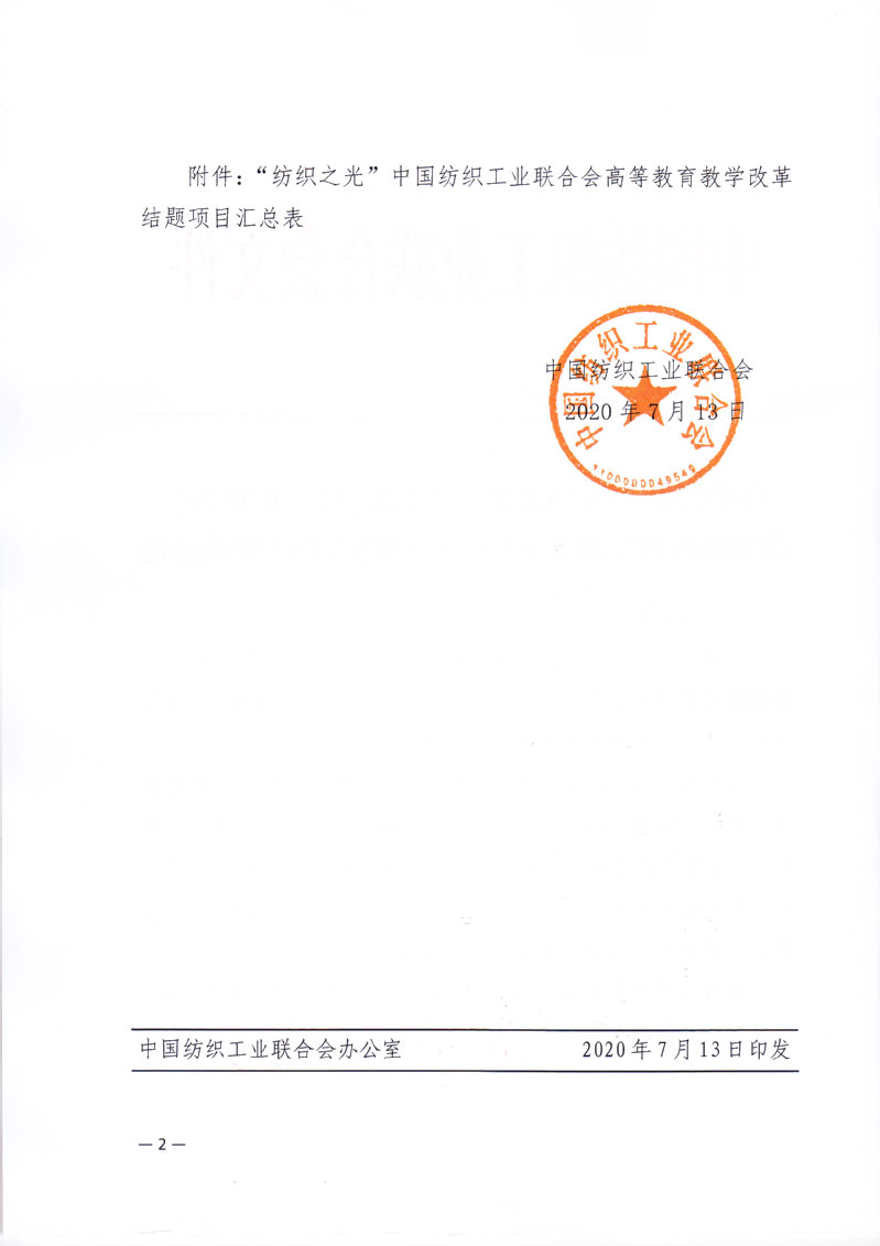 关于公布“纺织之光”中国纺织工业联合会高等教育教学改革立项项目结题验收结果的通知