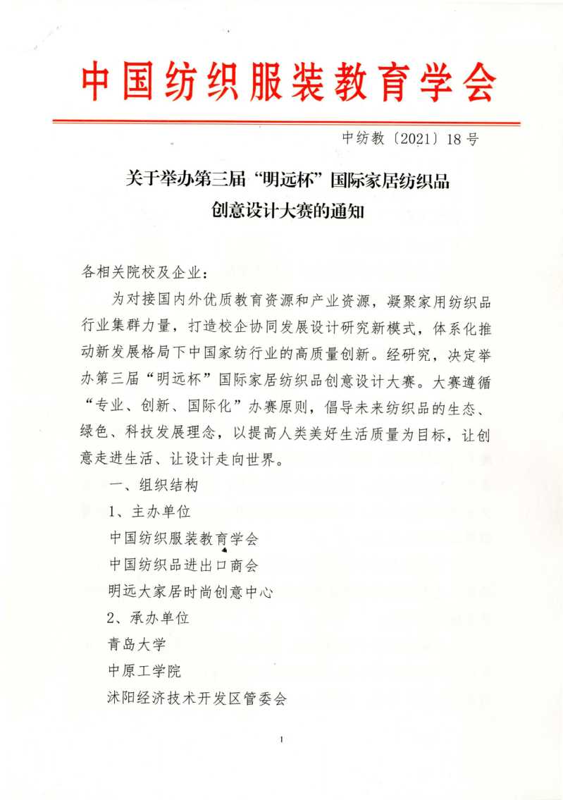 关于举办第三届“明远杯”国际家居纺织品创意设计大赛的通知