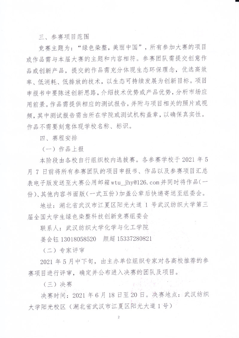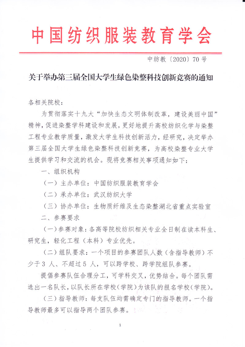 关于举办第三届全国大学生绿色染整科技创新竞赛的通知