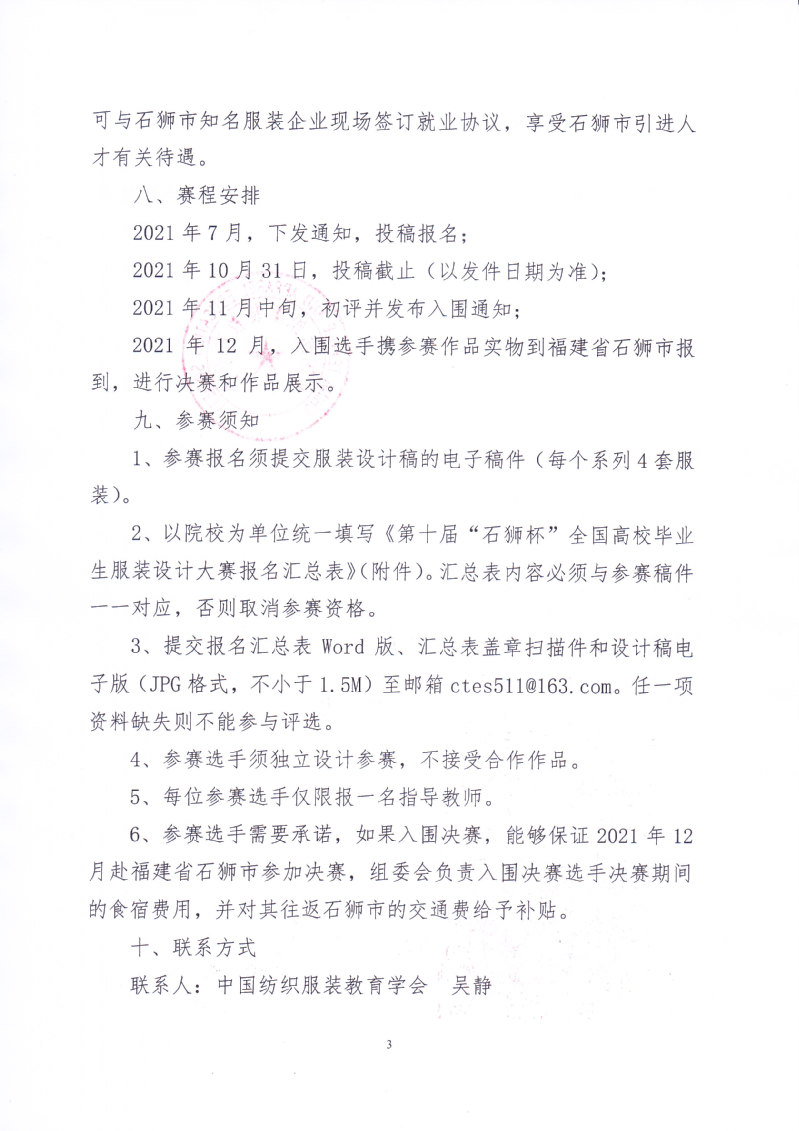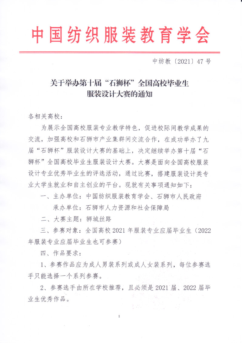 关于举办第十届“石狮杯”全国高校毕业生服装设计大赛的通知