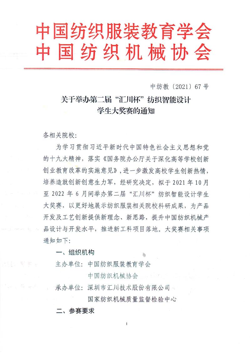 关于举办第二届“汇川杯”纺织智能设计学生大奖赛的通知