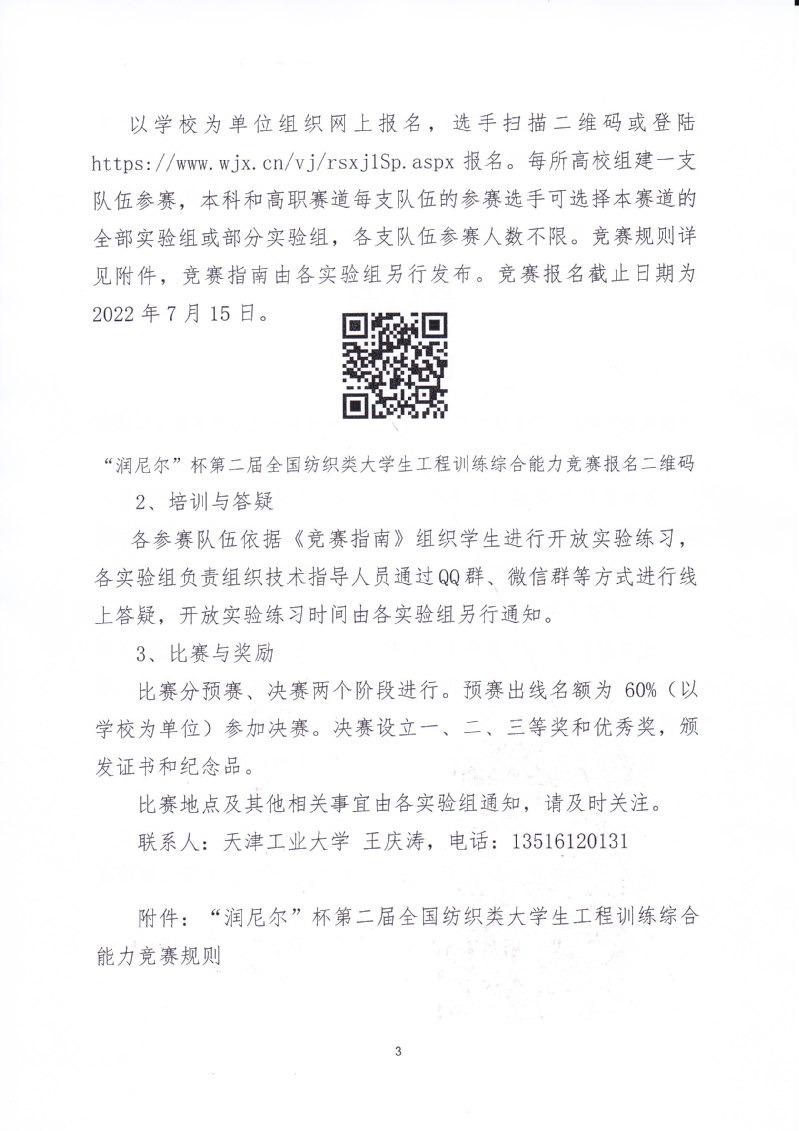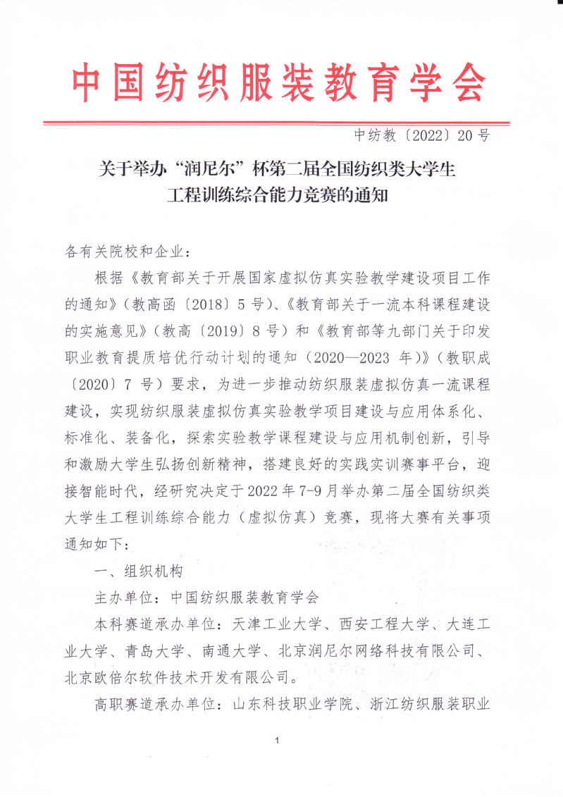关于举办“润尼尔”杯第二届全国纺织类大学生工程训练综合能力竞赛的通知