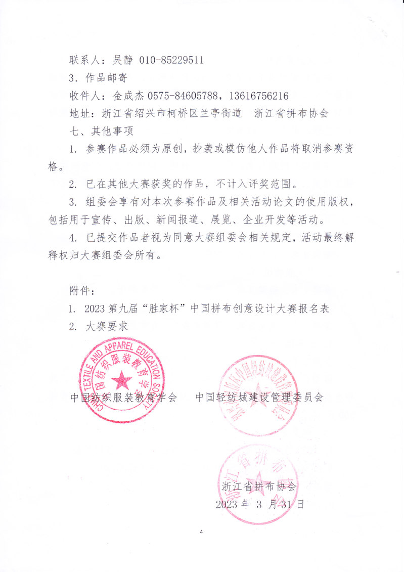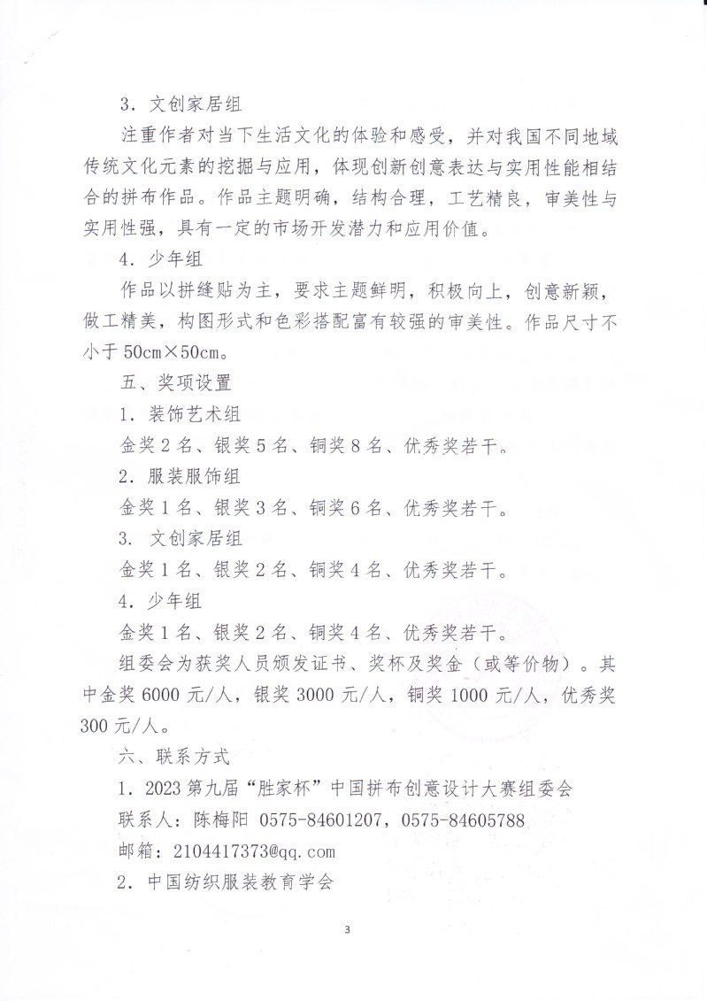 关于举办2023第九届“胜家杯”中国拼布创意设计大赛的通知