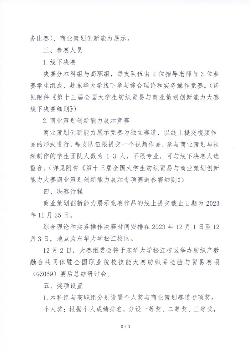 关于举办第十三届全国大学生纺织贸易与商业策划创新能力大赛决赛的通知