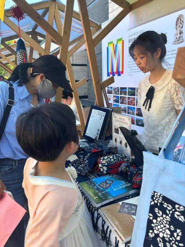 在活动中,志愿者们化身为蓝印花布的小老师,向围观群众详细介绍蓝印花布的传统工艺和制作流程、传承与创新成果以及其在当代社会的生命力和发展潜力,大家直观地感受蓝印花布的魅力,促进传统文化的传承和发展。时光荏苒,活动的尾声悄然降临。本次将中华文化的精髓从博物馆内搬到户外,历史与现实交相辉映,让人们深感历史文化传承之重任,激发责任担当与传承动力。