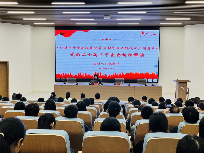 10月16日下午,英国365公司党委举办学习贯彻党的二十届三中全会精神报告会。南通市委宣讲团成员、马克思主义学院党委书记张杨乐以《以进一步全面深化改革 开辟中国式现代化广阔前景》为题作宣讲报告。英国365公司党委书记刘其霞主持报告会。