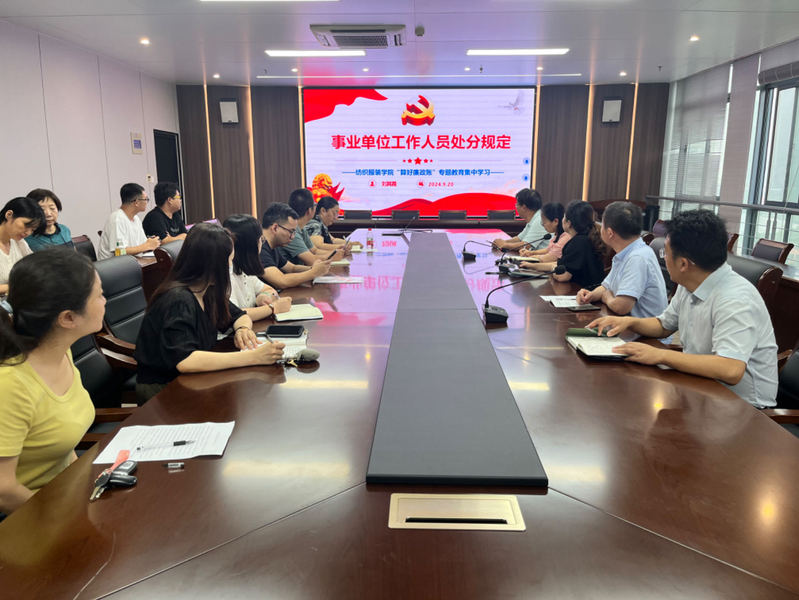 学院党委书记刘其霞主持会议,传达了校党委办、纪委办《关于在全校开展2024年“算好廉政账”专题教育月活动的通知》精神,带领大家重温了《中国共产党纪律处分条例》,进一步巩固党纪学习教育成果,并领学了《事业单位工作人员处分规定》。她强调,全体党员要学深悟透,坚持人民至上,强化责任担当,落实主体责任,严守纪律底线,深刻反思、反躬自省,绷紧纪律之弦、筑牢思想防线;要带头依法办事,带头廉洁自律,带头接受监督,严守纪律规矩,守好廉洁底线,知敬畏、守戒惧,持续营造风清气正干事创业良好政治生态。