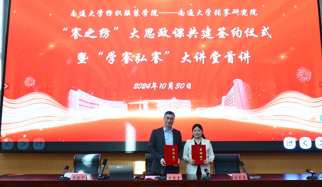 签约仪式上,刘其霞介绍了“謇之纺”大思政课建设方案。表示将以习近平总书记关于“大思政课”重要指示、批示精神为指引,坚持立德树人根本任务,立足纺织学科特色,积极探索构建“大思政课”实践路径,推动思政教育与传承弘扬张謇精神、教学活动、管理服务、实践创新等深度融合,切实提升纺织学科大学生思政教育的时代性、针对性和实效性。培育学生坚定远大理想信念,树立正确的世界观、人生观和价值观,厚植家国情怀,增强专业认同感、社会责任感和强国使命感。促进学生全面发展,提升综合素质与能力,培育时代新人。