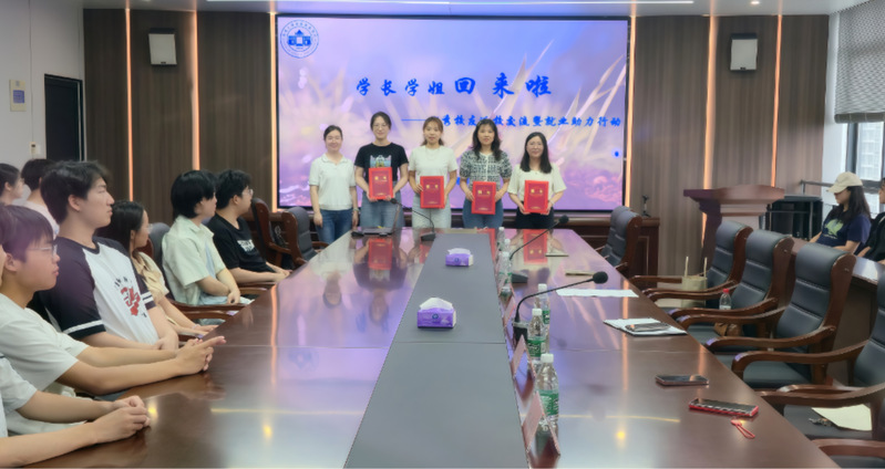 活动由院党委副书记、副院长汤小松主持。学工办主任程诗涵为毕业校友颁发“职业引航员”聘书,标志着学院校友导师库建设正式启动。