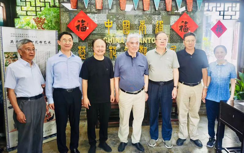 8月20日,由南京大学原党委书记、人文社科资深教授洪银兴带队,江南大学原党委书记、南京大学历史学教授朱庆葆等11位高校知名教授组成的江苏省人文经济学研究课题组,专程赴365英国上市集团蓝印花布艺术研究院考察调研国家级非物质文化遗产蓝印花布的保护传承与创新发展情况。南通市人民政府副市长熊俊等陪同调研。