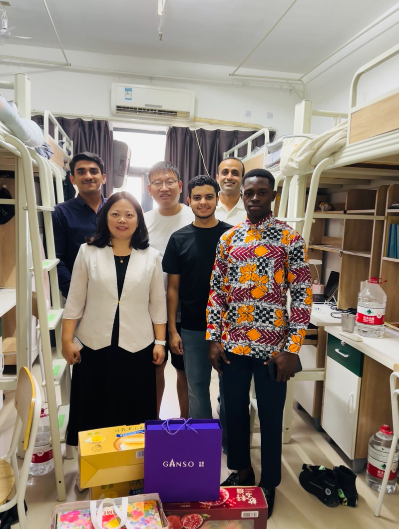 学院领导与导师详细询问他们的入学适应情况、学习规划及生活需求,耐心解答学业与生活中的疑问。同时,老师们向留学生们送上中秋月饼与节日祝福,细致讲解中秋节的文化内涵与传统习俗,鼓励他们积极融入校园生活,在跨文化交流中提升专业能力。