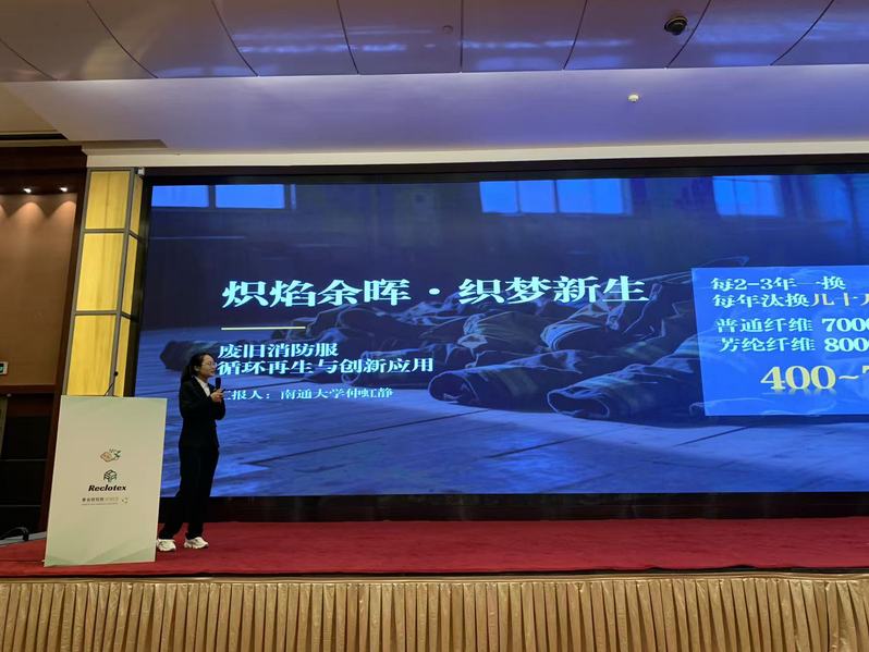 在专题论坛上,《炽焰余晖·织梦新生》的项目路演引发行业关注。该团队针对消防服这一特种纺织品,开发出从回收拆解到再生应用的闭环循环体系,成功将退役消防服转化为环保阻燃面料,并延伸开发出系列家居用品。团队创新采用的物理-化学协同处理工艺,不仅实现材料高效再生,更建立起覆盖收集、拆解、再生的全生命周期管理体系。