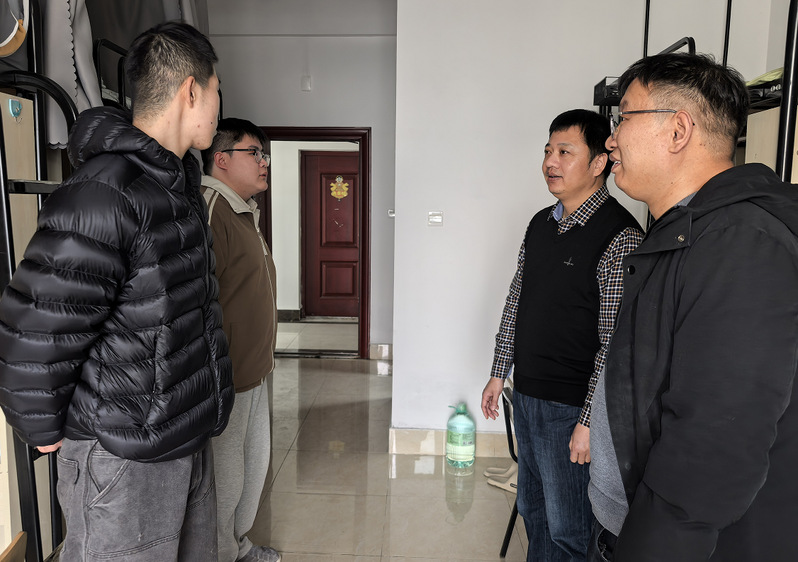 会议结束后,张广宇、汤小松带队深入研究生宿舍,开展拉网式安全大检查,为留校学生的寒假生活筑牢“安全屏障”。检查组以“查隐患、促整改、保安全”为目标,重点排查宿舍内违规使用大功率电器、私拉乱接电线、插排串联放置等用电安全隐患。并与同学们亲切交流,详细询问大家的假期学习计划、生活需求及实际困难,叮嘱同学们时刻绷紧安全之弦,养成“人走断电、关门关窗”的良好习惯,保持宿舍整洁有序,共同营造安全文明的住宿环境。针对检查中发现的个别宿舍杂物堆积、插排使用不规范等问题,检查组现场提出整改意见,明确整改时限,建立问题台账,实行闭环管理,确保隐患及时消除。
